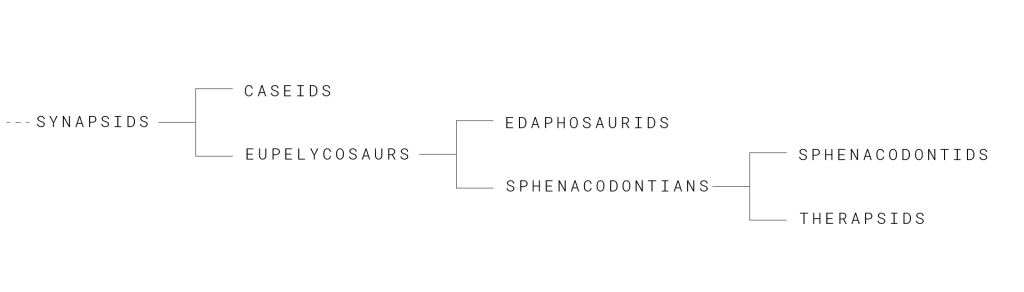 I know, I know. A lot of big words. I’m happy to dash over this section if you will permit me and bring up the next important stop on this prehistoric train ride through mammalian evolution – the rise of the therapsids. I will add a quick note here to say that all the lineages from the synapsids to the Sphenacodontids were formerly called pelycosaurs. This word has now fallen out of favour for the more accurate term “stem mammals.”